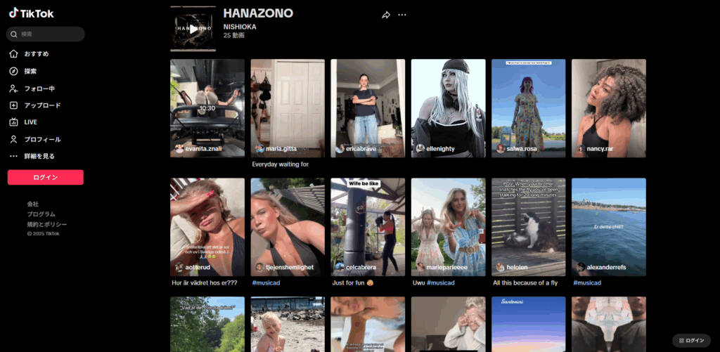 『HANAZONO』を使用したTikTok動画が、ついに 45本 に到達しました。