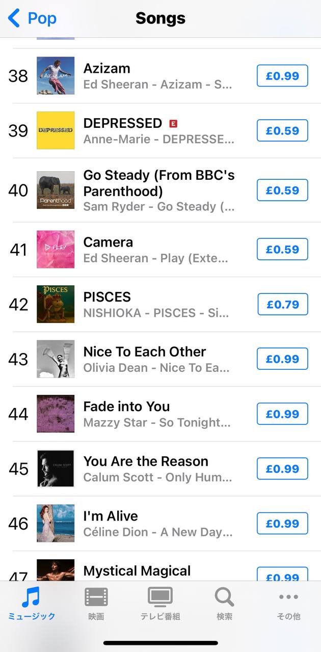 動画は、iTunes UK「POP 200」チャートにて「PISCES」が 42位を記録した際の画面映像です。
